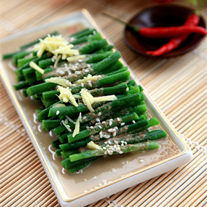原料:豇豆、白糖、鸡精、蒜茸、小红椒、盐、镇江香醋、辣油、香油。