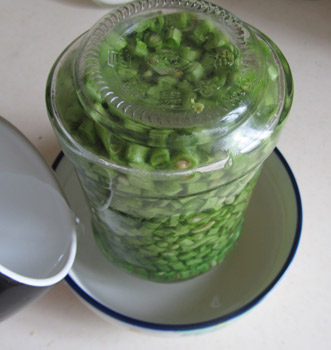 5 三天后观察豇豆颜色,由绿变黄后即可转入冰箱中冷藏。