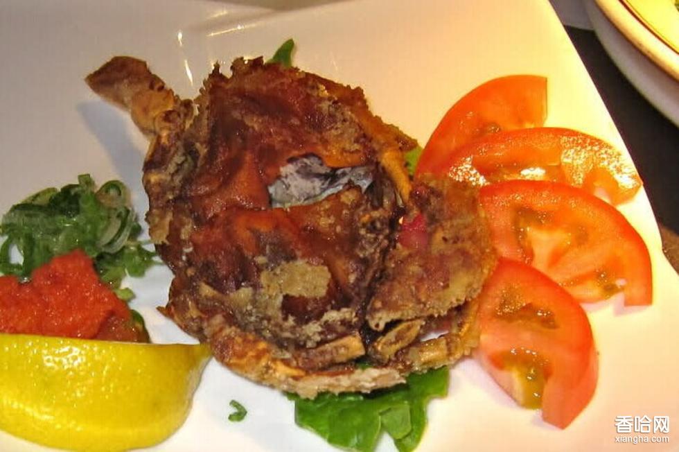 煎连壳蟹是一道湖南省的汉族传统名菜,属于湘菜系。蟹乃食中珍味,素有“一盘蟹,顶桌菜”的民谚。文人雅士咏蟹诗词,不胜枚举。"一腹金相玉质,两螯明月秋江"、"蟹肥暂擘、馋涎堕,酒绿初倾老眼明",《红楼梦》中写有宝黛在藕香榭食蟹的故事,赏桂咏菊,煞是快哉!