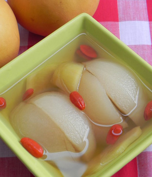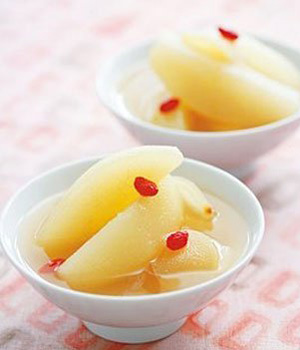 而梨甘凉微酸,养阴清热,润肺止咳,对热病津伤,口渴便秘,阴虚肺燥的咳嗽,喘促气急,咽干音哑等症状尤为适宜。古人认为梨生吃可以清热,熟吃可以滋阴。此外,梨含有大量维生素A,具有防癌作用。