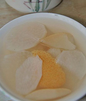 综上所述,将白萝卜梨汤作为患者的日常饮料,能起到缓解咳嗽的作用。不过,患者食疗的过程中还应该按时的服用一些药物,那样的话,治疗的效果会更好的哦!