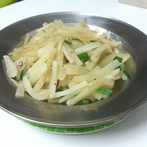 5、萝卜丝软后加一勺盐,撒点胡椒粉,味精即可装盘。