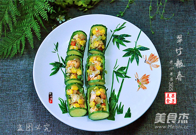 春天来了,万物萌芽竞生长,竹也不甘落后,笋尖破土而出,你追我赶看谁长得高。春天给人力量给人带来了更多的美食遐想,来,让我们用黄瓜盅配合自己喜欢的食材来做一道表现翠竹报春的意境菜吧!关于黄瓜盅里的菜的事儿,可以选择自己喜欢吃的菜小炒即可当然凉拌菜要是可以的,我这里做了一道虾仁炒玉米粒,金黄色的菜配上绿色的黄瓜盅,颜色分明想想也是很美吧!
