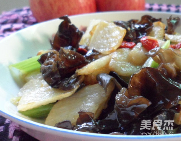 山药含有淀粉酶、多酚氧化酶等物质,有利于脾胃消化吸收功能,是一味平补脾胃的药食两用之品。此菜营养丰富,味道鲜美,操作简便。 主料 山药250克 黑木耳4朵 辅料 食用油适量 盐适量 生粉适量 姜适量 蒜适量 葱适量 枸杞适量 花椒少许 耗油适量 黑木耳炒山药的做法 1.材料图 2.将切好的山药裹上生粉。 3.下锅炸至微黄捞出。 4. 5.热锅倒油,放入姜、葱末、花椒炒香。 6.放入山药、枸杞、黑木耳、耗油翻炒均匀。 7.成品。