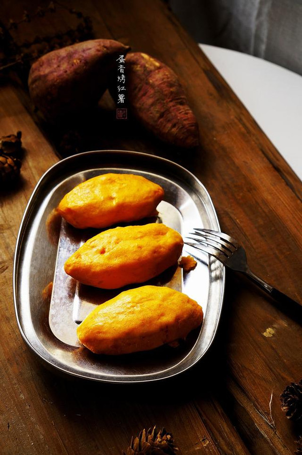 今天的烤红薯呢当然不是像以前小时候那样放在土灶里用柴火烤啦,城里还真没这个条件,哈哈。所以就做了改良创意版的【蛋香烤红薯】,当个小点心,小零食吃还是很不错滴,可以与家人朋友一起,边吃边聊这些有关于红薯的事情呢,也是很美好不是吗?