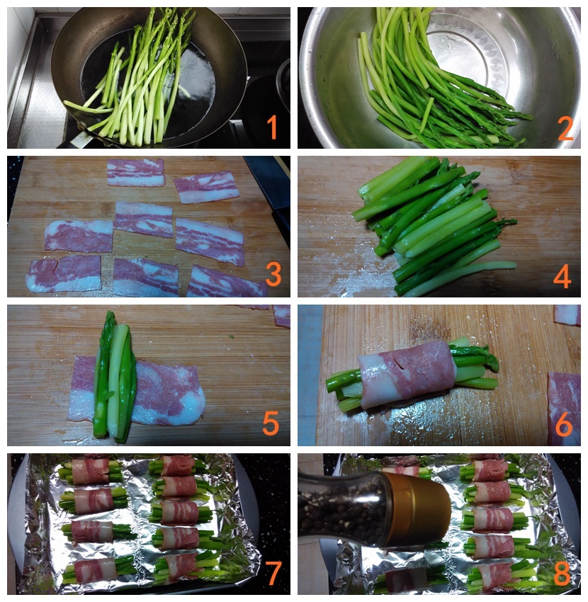 至于它的作用是否如上所说那样神奇,我可就无法验证了,因为幸好,我没有以上疾病困扰,也未到衰老的阶段。不过芦笋味道清新,烹饪方便,又是绿色蔬菜,就这几样优点,就足够吸引我了。去掉茎部的硬皮,用培根裹上,然后磨点黑胡椒撒上烤烤,就这样简单的一道菜,端给谁,却都爱吃!
