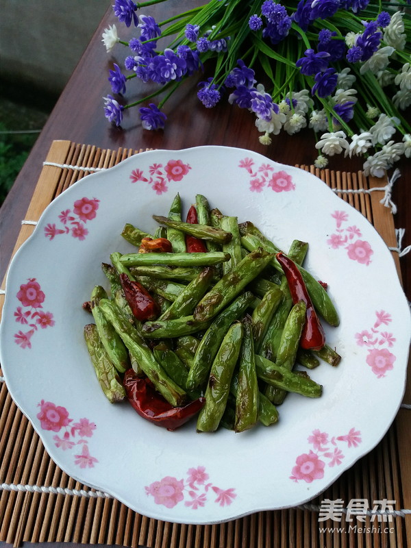 简单美味的家常菜。 主料 四季豆450克 辅料 干辣椒4个 花椒10粒 食盐1/4茶匙 味精适量 食用油适量 干煸四季豆的做法 1.将四季豆掐去两头的尖,撕掉老筋,掰成段 2.清洗干净,沥干水分 3.锅中油烧热。放入四季豆中火炸制 4.炸至表皮褶皱后盛出 5.锅中留少许底油,放入干辣椒和花椒粒炒香 6.倒入四季豆翻炒数下 7.放入食盐、少许味精炒匀即可