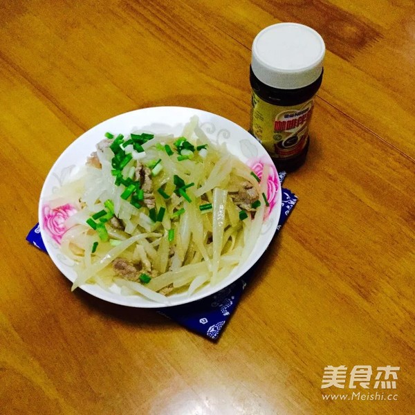 这个季节多吃萝卜有益 主料 萝卜500克 瘦肉100克 辅料 油15克 盐8克 蚝油3克 姜10克 香葱5克 肉片焖萝卜的做法 1.准备好材料,瘦肉切片,用油盐和蚝油腌10分钟 2.萝卜切条 3.起油锅 4.爆香姜片 5.加入萝卜,加入盐炒匀,加入少许清水,盖上盖煮3分钟 6.加入瘦肉同煮2分钟便可 7.出锅,撒上葱花 烹饪技巧 猪肉腌过比较入味