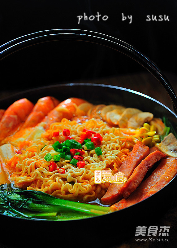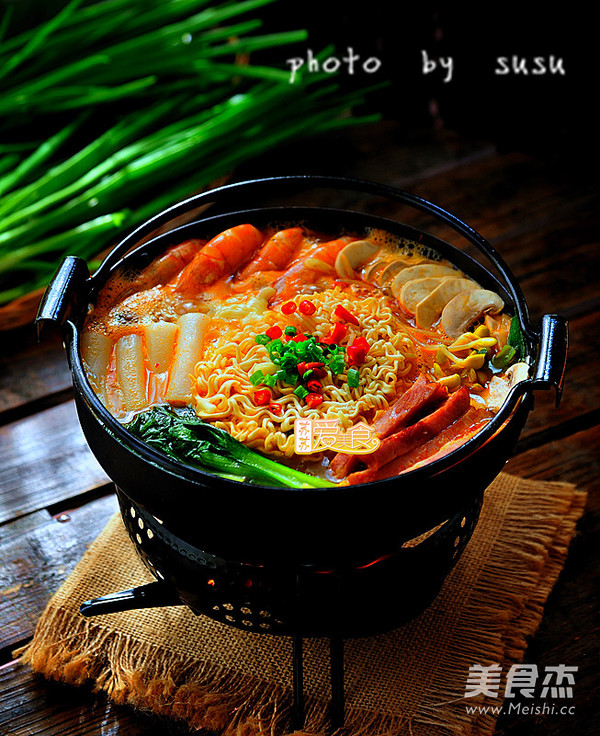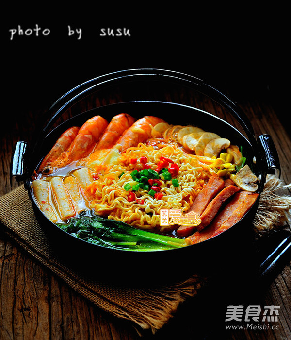 韩式暖锅也叫部队火锅,是冬季我家餐桌上出现频率最高的菜,简单易做,比吃普通火锅方便,荤素搭配合理,几乎任何食材都能做成温暖落胃的锅物 当小小暖锅在火炉上煮开时,沸腾的汤汁伴随着泡菜独特的酸辣与海鲜的鲜甜,形成一股温热诱人的香气