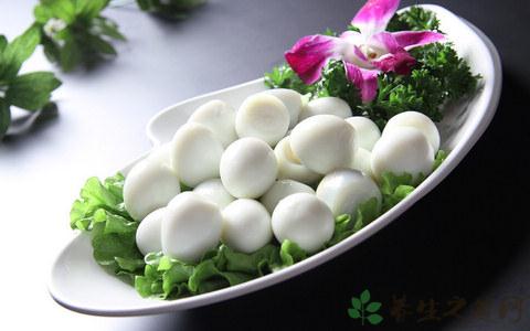 鹌鹑蛋对贫血、营养不良、神经衰弱、月经不调、高血压、支气管炎、血管硬化等病人具有调补作用;对有贫血、月经不调的女性,其调补、养颜、美肤功用尤为显着。一般人群都可以食用,最适合体质虚弱,营养不良,气血不足者和少年儿童生长发育者食用。