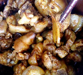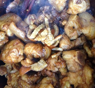 10.加入生抽两勺、老抽两勺、五香粉适量.没加入一样配料都翻炒均匀再加入下一样配料