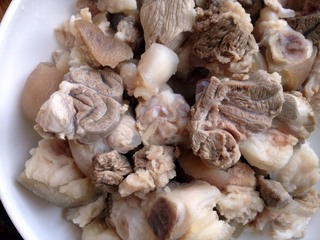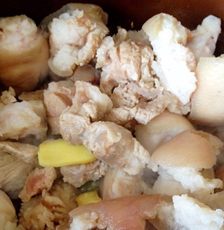 1.猪脚洗净汆水后冲洗掉浮漂放一盆冷水加两个冰袋泡一个小时