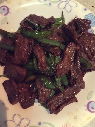 主料牛柳 (300克)尖椒 (10个)调料黑胡椒粉 (2勺)厨具炒锅 牛柳切片,加适量盐、黑胡椒、料酒、生抽(料酒我只撒了一点点)拌匀,腌制十五分钟。 牛柳切片,加适量盐、黑胡椒、料酒、生抽(料酒我只撒了一点点)拌匀,腌制十五分钟。 锅内热油,爆牛柳,翻炒至变色,撒一点点糖提味,再放一点老抽。不要放多了。(对不起,一个人做饭经常顾不上拍照) 盛出爆好的牛柳备用。 锅内就底油,爆尖椒。然后倒入炒好的牛柳,继续翻炒两分钟。撒少量盐,和适量黑胡椒粉(依据个人口味)翻匀出锅