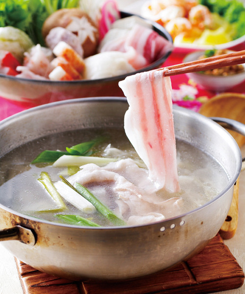 五花肉片250公克、酸白菜300公克、什锦火锅料1盒、嫩豆腐1块、青葱3根