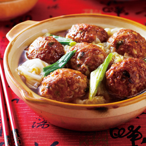 用绞肉做成的狮子头,材料里可多加一些蔬菜,如荸荠或豆腐,如此ㄧ来,就可以增加肉丸的份量,不仅省钱口感上也不怕太油腻。