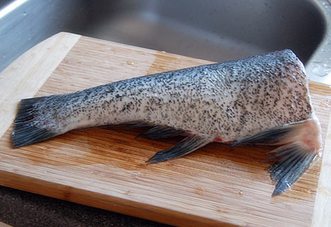 1. 草鱼尾半部,洗净。