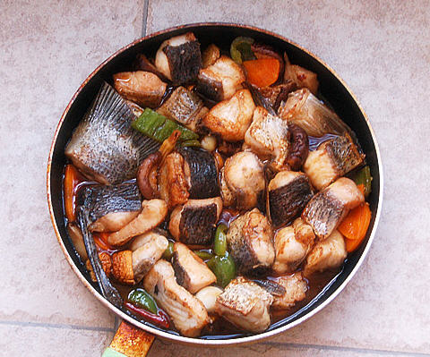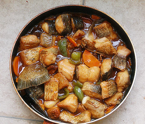 8. 倒入鱼块,焖煮至汤汁浓稠。品尝一下汤汁,加适量盐调味。