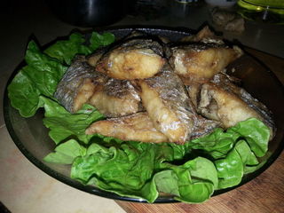 主料: 带鱼 (一只) 生菜 (二片) 芝麻 (少许) 橙 (一个)