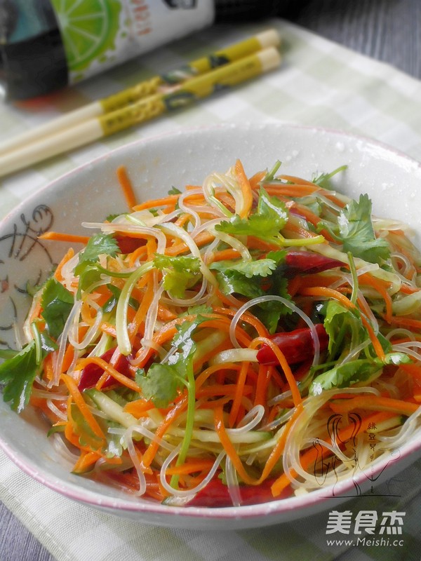 1、胡萝卜、青瓜我是切的丝,刨的也可以哦; 2、我用的粉丝不用泡的,用不同粉丝要视实际情况。