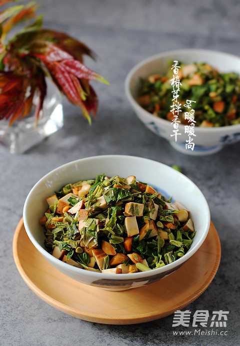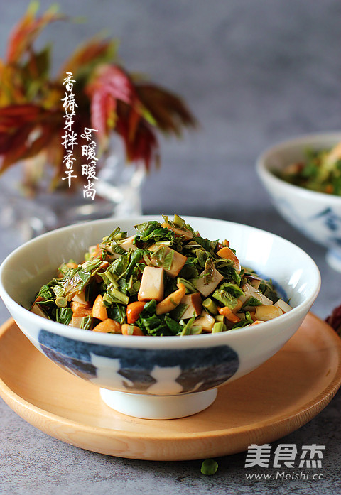 “雨前椿芽嫩如丝,雨后椿芽生木质。”香椿的吃法有很多,最常见的就是香椿炒蛋、香椿鱼和拌香椿。今天我就用香椿芽同五香豆干和花生碎同拌,香椿浓香宜人、香干Q弹有嚼劲,花生碎香脆,一道看似简单的小菜在味道上层次很是丰富,简直可以让人回味一整个春天。因为香干本身有咸味,而我们又是冲着香椿来的,所以此道菜调味要轻。