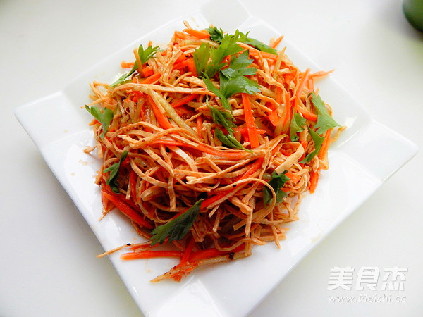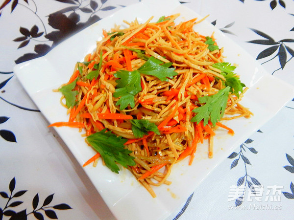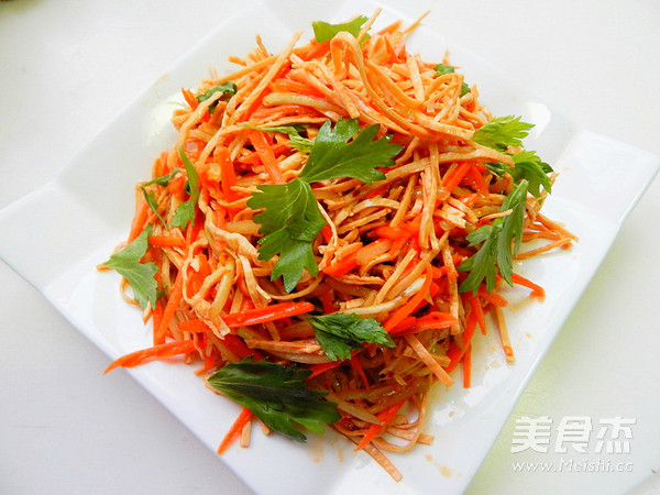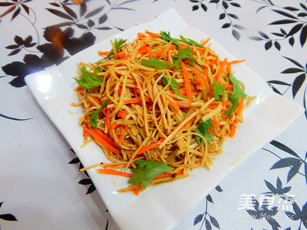 凉拌云丝这道菜是大众喜欢的一道凉拌菜,很美味 主料 云丝250克 黄瓜1根 胡萝卜1根 芹菜叶适量 辅料 生抽5克 香油2克 香醋4克 油辣子1勺子 盐4克 鸡精适量 凉拌云丝的做法 1.云丝提前泡水里 2.泡软去掉水 3.胡萝卜黄瓜去皮切丝 4.然后加入香油 5.加入生抽 6.加入醋 7.加入盐及鸡精 8.在加入油辣子 9.搅拌均匀 10.做好后摆上芹菜叶子,然后摆盘 烹饪技巧 相做的口味自己调吧 非常的简单好吃