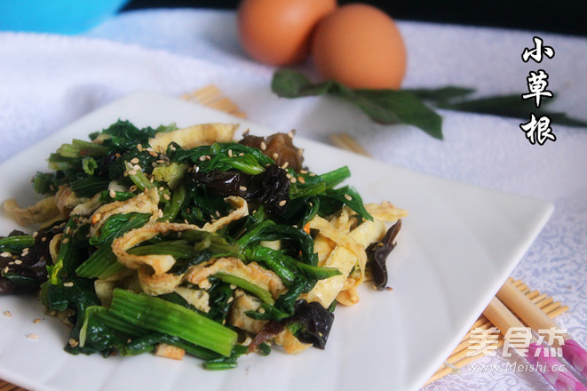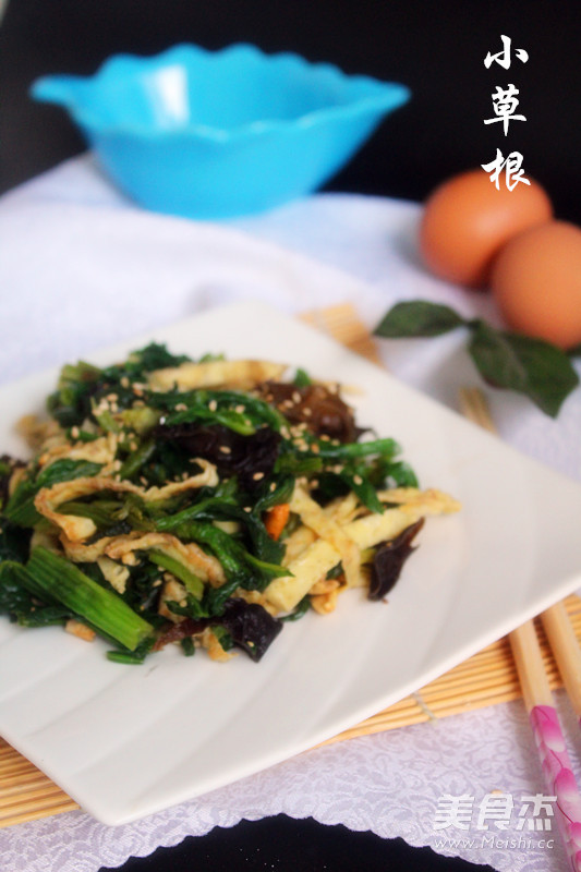 3.菠菜处理干净,开水焯一下,捞出,凉水泡上,提前泡好的木耳也用热水焯一下。