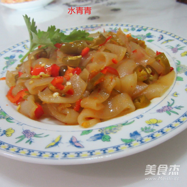 酸辣椒拌玉米粉皮,也就是粉皮是用玉米淀粉做的,自已在家试做的粉皮哦。正棕健康食物。