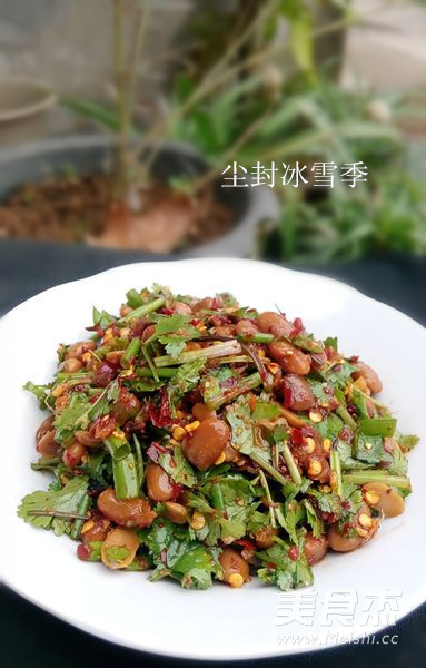 老干妈豆豉打开即可食用,但是加了香菜和糊辣椒又是另外一种味道。