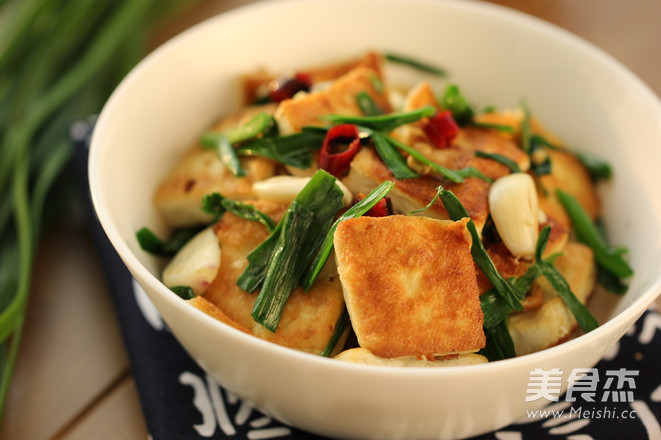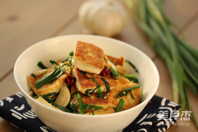 1、先将臭豆腐双面煎至金黄, 臭豆腐放入锅中时油要烧热, 不要急于翻动,轻轻晃动锅,臭豆腐能移动了再翻面, 这样豆腐不容易破皮; 2、下入韭菜段不要炒过长时间,变色后就可以加入盐调味, 翻炒均匀即可。