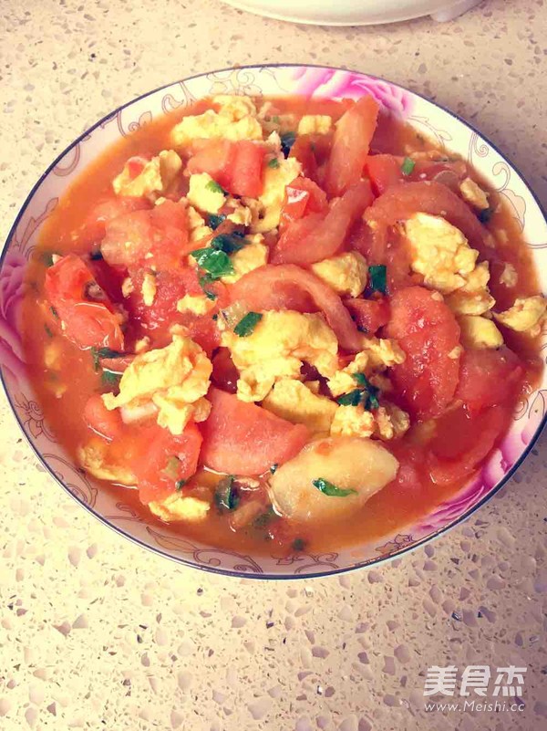 西红柿炒鸡蛋是俺的最爱啦! 主料 西红柿2个 鸡蛋2个 辅料 盐1茶勺 白糖2勺 食用油适量 西红柿炒鸡蛋的做法 1.西红柿切片 2.鸡蛋打匀 3.蒜,生姜,香菜切碎 4.鸡蛋下锅煎至金黄成型,盛进盘里备用 5.下油,蒜,生姜,煎至一会儿穿出香味 6.下西红柿翻炒一会儿 7.再下鸡蛋翻炒片刻,加入少量水 8.最后加入香菜,盐,味精,再翻炒即可出锅。