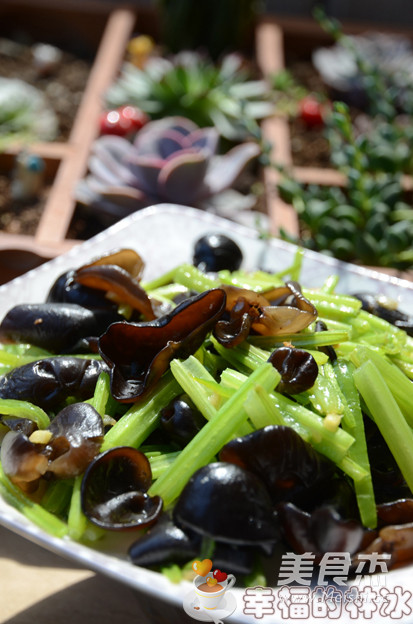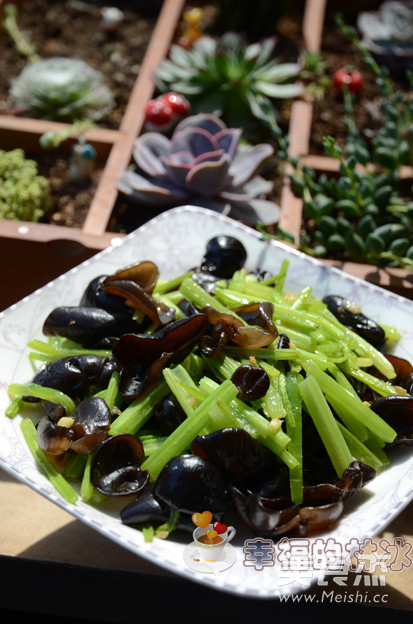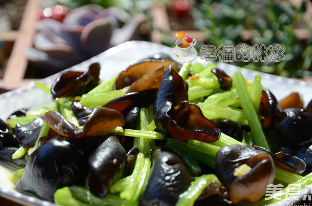 1.木耳提前用水泡发,香芹去掉叶子洗净备用