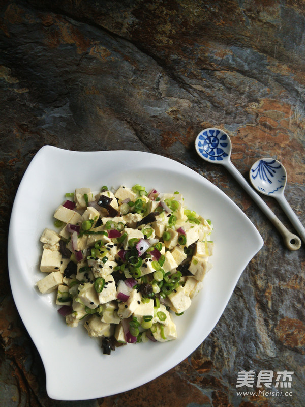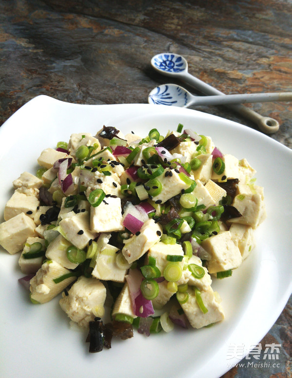 小葱15克 洋葱10克 木耳10克 鸡粉1克 芝麻油1勺 黑芝麻少许 盐适量
