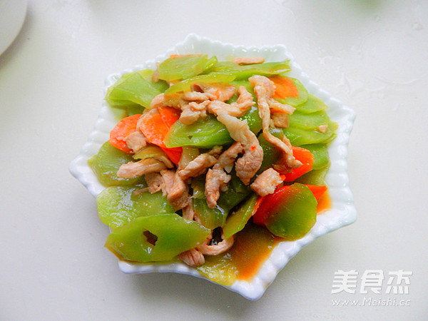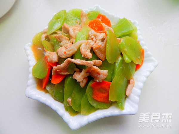 一道普通的家常菜 主料 莴笋1根 猪肉150克 胡萝卜1根 辅料 料酒4克 淀粉2克 盐4克 生抽3克 食用油适量 莴笋炒肉的做法 1.猪肉切条切块随自己喜好 2.莴笋胡萝卜去皮切片 3.锅里加入油加入腌好的肉片炒香 4.快速翻滚散 5.然后加入莴笋及胡萝卜炒匀 6.不停翻炒 7.加入生抽 8.快速翻匀 9.炒匀后加入盐翻炒 10.大火翻炒至放味 11.炒好装盘 烹饪技巧 我家每次炒从都要腌一下,这样炒起来肉嫩嫩的