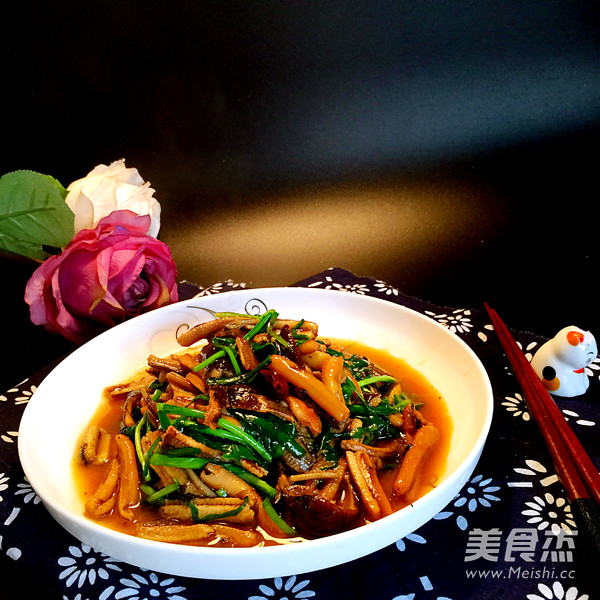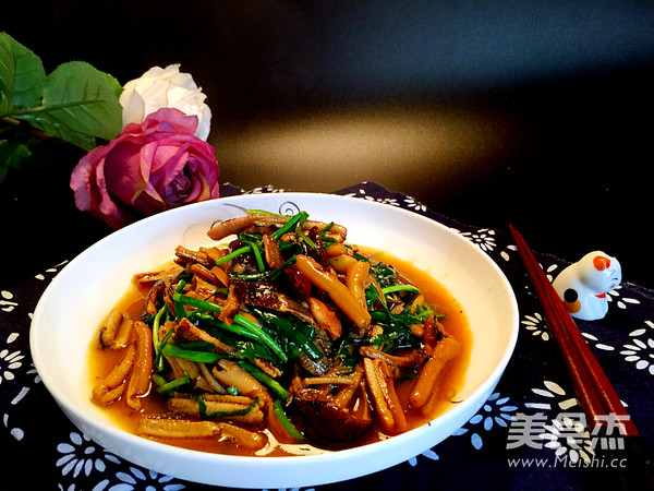一般在我家鳝丝都是用洋葱来炒,今天家里没有洋葱,正好有一点韭菜,于是把它们一起炒了!