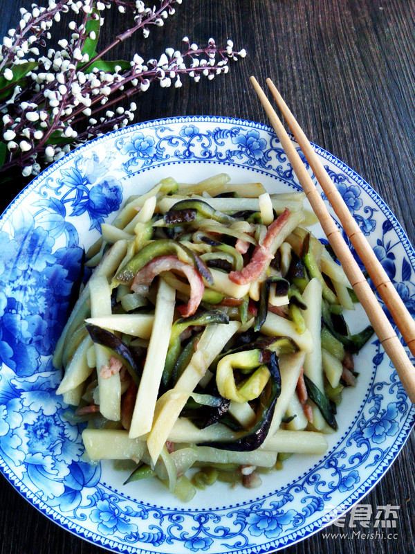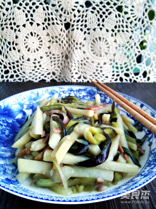 1、我是分次加盐的,个人习惯,感觉这样每样食材都能入味; 2、培根可以用猪肉代替; 3、茄子不用去皮,以免损失营养; 4、冲洗掉土豆表面的淀粉,虽然损失少许营养,但是可以避免炒的时候发粘和糊锅,