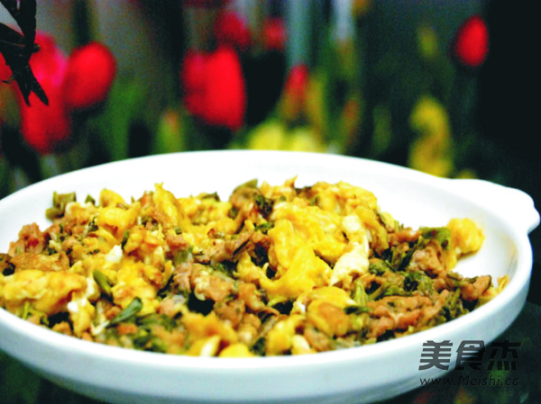 #春之味#——香椿炒蛋.香椿芽.真正是只有春天才能享受的口福~搭配鸡蛋香气四溢,在春季,这道香椿炒蛋是我家餐桌上最受欢迎美味佳肴。喜欢极了~ 主料 香椿芽200克 鸡蛋3只 辅料 盐3克 橄榄油适量 香椿炒蛋的做法 1.先将香椿择洗干净,沥干待用 2.香椿芽用开水焯烫 3.捞出挤干水份,切碎 4.放入大碗中,打入3只鸡蛋 5.加盐搅拌均匀 6.锅加橄榄油,油热倒入蛋液炒熟 7.当两面均成金黄色后即可出锅 8.装盘,味美鲜香的香椿炒蛋就可以开吃啦~ 烹饪技巧 还可以加现磨黑胡椒粉可以去掉鸡蛋的腥气,