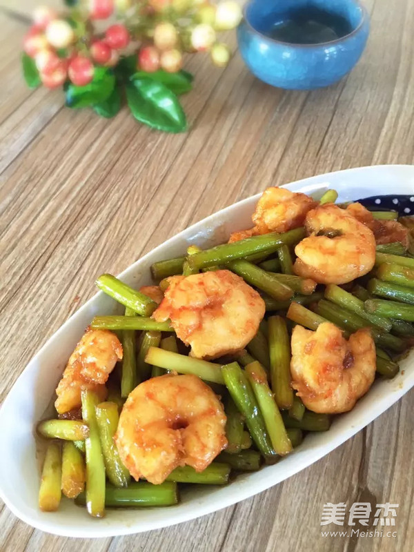 蒜苔200克 虾仁150克 姜10克 葱10克