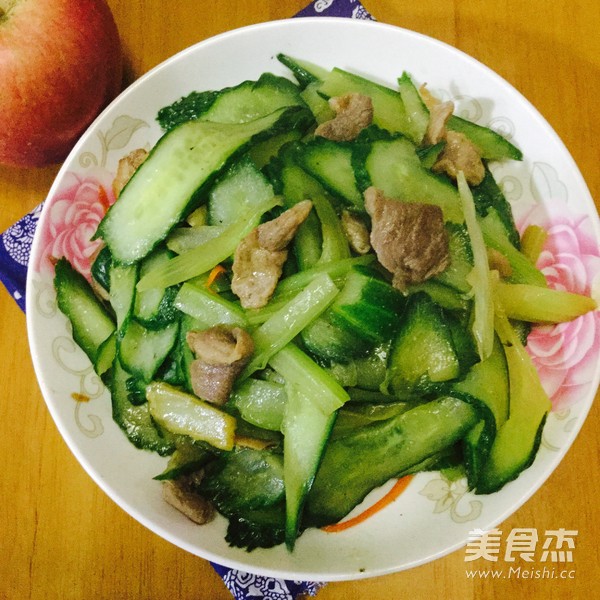 喜欢青瓜的味道 主料 猪肉100克 青瓜500克 芹菜50克 辅料 油10克 盐5克 肉片炒青瓜的做法 1.准备好青瓜、芹菜和猪肉,猪肉切片、用油盐腌10分钟,青瓜斜切片,芹菜切条 2.起油锅 3.加入猪肉爆炒2分钟 4.加入芹菜条翻炒,加入少许清水,盖上盖煮2分钟 5.加入青瓜,翻炒至断生,加入盐调味即可 6.出锅 烹饪技巧 青瓜炒至断生即可,炒久了不爽口