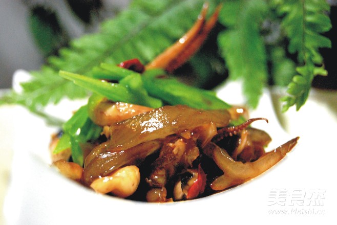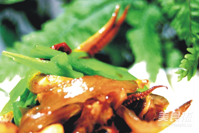 4.放入鱿鱼须煸炒