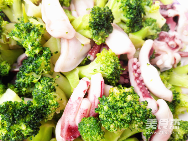 鱿鱼很鲜美,把它与西兰花配在一起,那真是太好吃了,不信你也来试试吧。