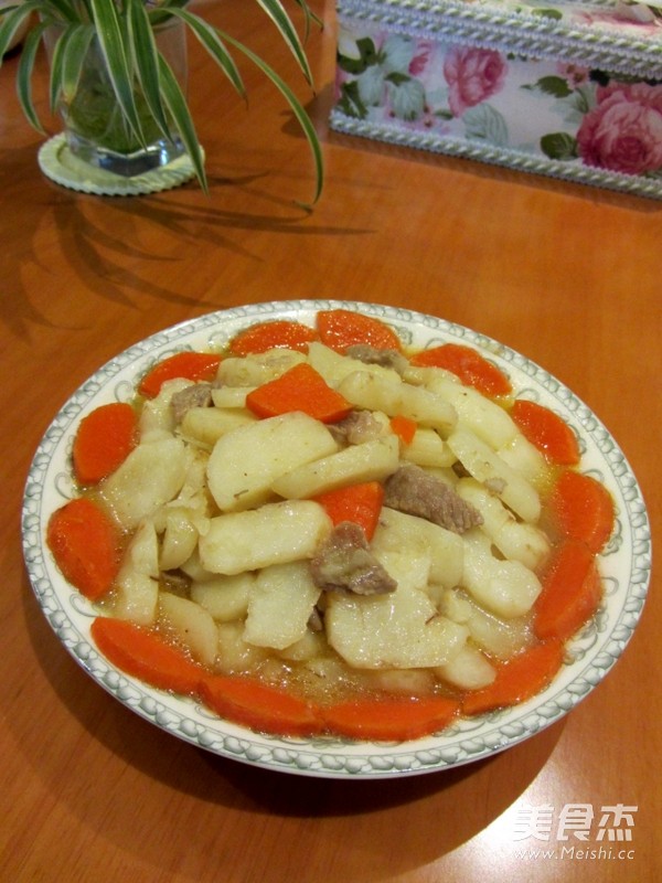 1.食材图,瘦肉已经切片加料酒拌了,马蹄和胡萝卜都需要切片,忘了拍了。