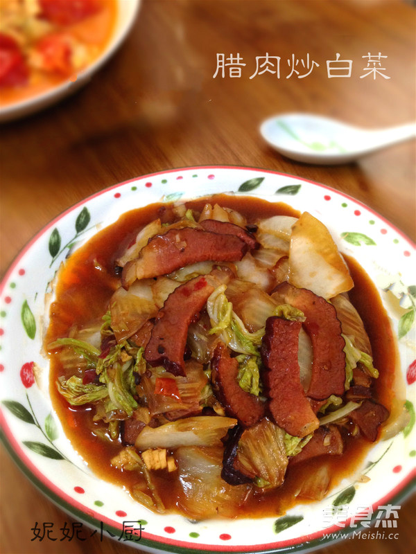 8.倒入腊肉翻炒均匀,烹入少许料酒去腥