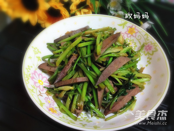 8.炒至香菜断生加入盐调匀即可。