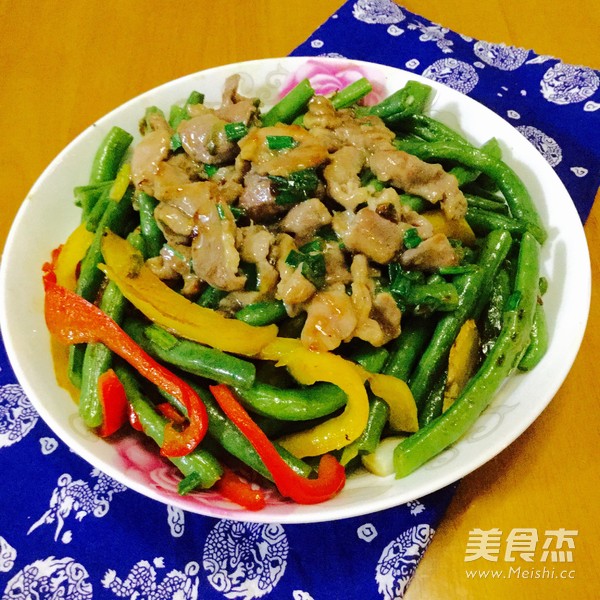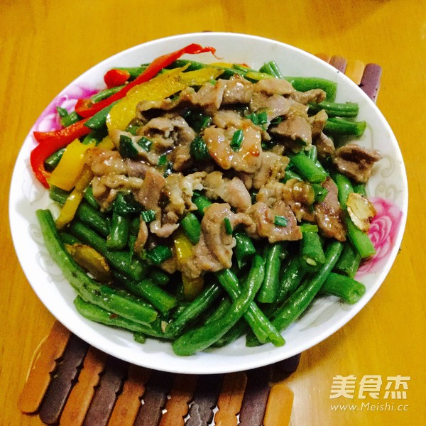很喜欢吃四季豆 主料 四季豆400克 彩椒50克 猪肉100克 辅料 油15克 盐8克 姜3克 香葱10克 肉片炒四季豆的做法 1.准备好四季豆 2.猪肉切片,有油盐腌10分钟,四季豆切段,洗净,香葱切葱花,彩椒切条,姜切片 3.烧半锅开水,加入油盐,加入四季豆 4.加入彩椒,焯熟 5.起油锅 6.放入姜片 7.加入葱白 8.加入四季豆和彩椒,加入盐调味,翻炒均匀便可 9.盛起 10.再放入油 11.加入猪肉翻炒至熟,加入葱花翻炒均匀 12.将肉片盛起便可 烹饪技巧 灼四季豆时,加入油盐,可以保持四季豆的青绿