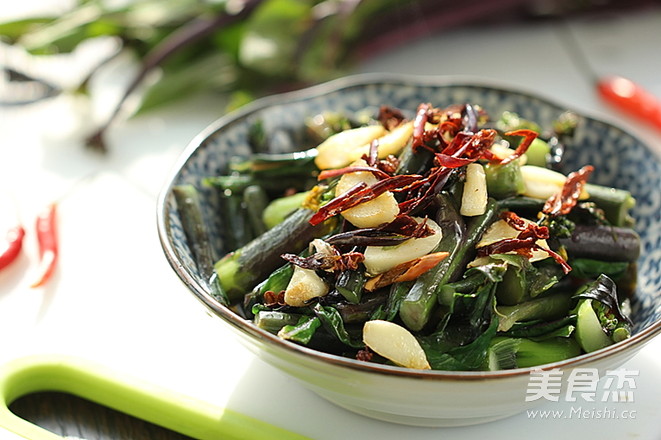 湖北菜薹也有写作红菜苔,是湖北地区的特有的蔬菜品种,很多人可能都不太熟悉,它的模样长得像油菜, 长老了顶上就会开出黄色的花, 菜薹呈紫红色,汤汁呈紫黑色。冬季是红菜苔上市的季节,特别是霜打过后的红菜薹味道最好,吃起来非常嫩,还带有丝丝清甜的味道。