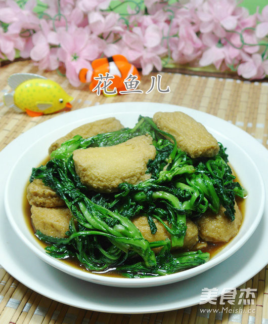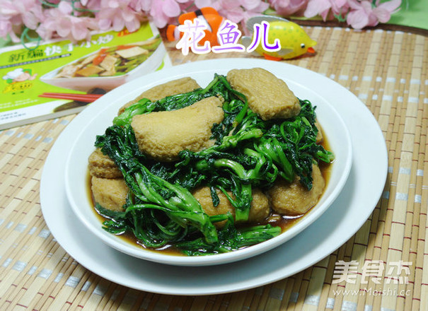 9.然后,煮至汤汁差不多时,合入已洗净的蒿菜翻炒翻炒,即成