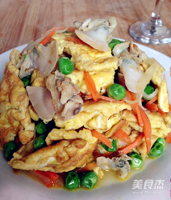 肉质饱满鲜美的文蛤肉、搭配鲜香的鸡蛋和色泽鲜艳的蔬菜 主料 文蛤500克 胡萝卜50克 豌豆(鲜)100克 洋葱30克 鸡蛋3个 辅料 食盐1茶匙 玉米油1勺 文蛤炒鸡蛋的做法 1.文蛤去壳洗净;胡萝卜、洋葱切丝;豌豆洗净;准备空碗,敲3颗鸡蛋 2.鸡蛋捣成蛋液 3.热锅倒油,烧至7成热,将蛋液迅速翻炒成蛋块,盛出 4.锅底留油,倒入文蛤肉,加料酒,烧开,盛出 5.干净的锅里倒油,加入胡萝卜、洋葱、豌豆一起翻炒2分钟 6.倒入文蛤肉,翻炒1分钟 7.最后倒入鸡蛋,加盐调味,继续翻炒均匀,2分钟出锅 烹饪技巧 1、文蛤要洗干净,不然会有沙子