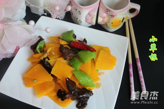 这道菜不仅色彩漂亮,更主要的是营养全面,快手简洁,特别适合上班族制作的一道家常菜,喜欢的看看: 主料 南瓜180克 木耳50克 尖椒1个 辅料 盐1小勺 白醋3克 蒜8克 青椒木耳南瓜片的做法 1.提前泡发木耳,南瓜去皮切薄片 2.锅里做水,水开之后将南瓜木耳一起倒入锅中焯水,南瓜七成熟捞出。 3.控干水备用 4.准备尖椒和蒜末 5.锅里加适量的油,油七成热,蒜末炝锅 6.将南瓜和木耳一起放到锅中,加适量白醋(有利于南瓜在翻炒的时候过于熟烂不成形)翻炒2分钟 7.加尖椒 8.加盐,翻炒均匀出锅。 烹饪技巧 南瓜焯水的时候不要过于软烂了 点击查看更多:南瓜汤的做法大全