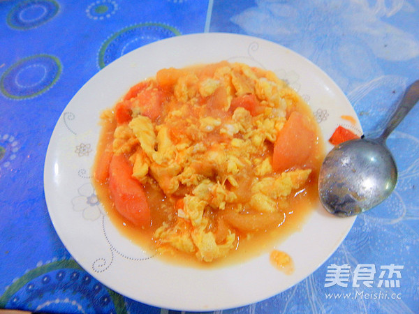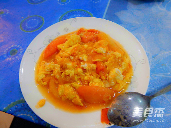 本来想炒番茄炒蛋的,一看鸡蛋 吃完了,只能炒鸭蛋了 主料 西红柿2个 鸭蛋2个 辅料 盐3克 鸡精2克 番茄炒鸭蛋的做法 1.材料准备好 2.西红柿清洗干净切成块 3.鸭蛋打碗里 4.锅里倒入油,加入打散的鸭蛋 5.快速炒匀 6.炒好装碗里 7.然后加入葱炒香后加入番茄 8.炒一两分钟加入一点水 9.然后加入鸭蛋炒匀 10.小小的翻炒一会 11.然后加入盐 12.炒至入味 13.好装盘 烹饪技巧 我加的水比较多,因为要给孩子泡饭吃,