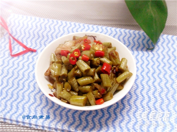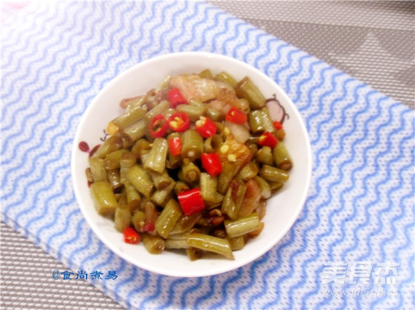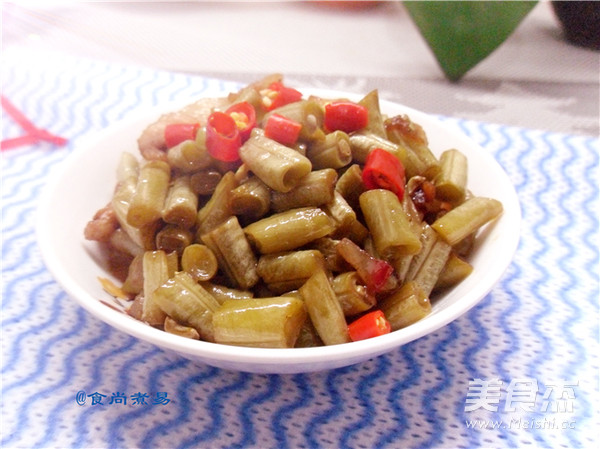 胃口不佳时炒一盘酸辣可口的豇豆丁,喝粥、下饭、拌面都可,酸辣爽脆又醒胃~ 主料 酸豆角150克 五花肉80克 蒜瓣4个 辅料 油适量 蚝油1茶匙 鸡粉少许 白糖1茶匙 小米椒1个 酸豆角炒肉的做法 1.备好食材 2.豆角浸泡片刻洗净切粒,五花肉洗净切丁、蒜瓣去皮拍碎 3.热锅,倒入少许油,将五花肉煸炒至金黄色,渗出油脂 4.加入蒜蓉煸炒30秒 5.倒入酸豆角粒继续煸炒 6.撒点水分翻炒均匀,调入蚝油、白糖 7.调入鸡粉 8.加上辣椒粒、端起平底锅、拋炒均匀食材即可 烹饪技巧 酸豆角有很大的盐分,买回先浸泡片刻再烹调,整个菜不需要额外再加盐了。